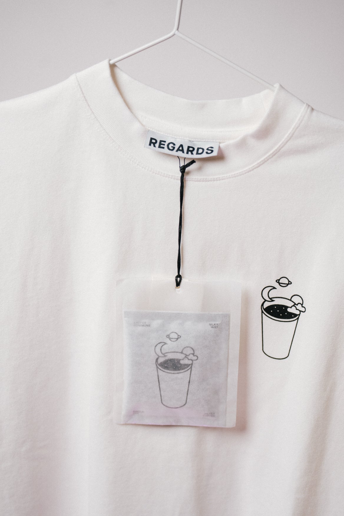 In super limitierter Auflage ist unser erstes richtiges Kaffeekommune T-Shirt aus einer Kollaboration der Kaffeekommune mit dem Label Regards aus Offenbach. Ivan von Regards ist schon seit vielen Jahren Stammgast und inzwischen ein guter Freund der Kaffeekommune geworden. So ist aus einem einfachen Gespräch im Café dieses irre Shirt geworden. "Specialty regards from..." nehmen wir wörtlich. Das heißt, ihr findet am Etikett eines jeden Shirts, einen Brewbag von uns.